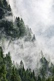 Ponořte se do ticha ranní mlhy vznášející se nad majestátním lesem. Nástěnná fototapeta s...